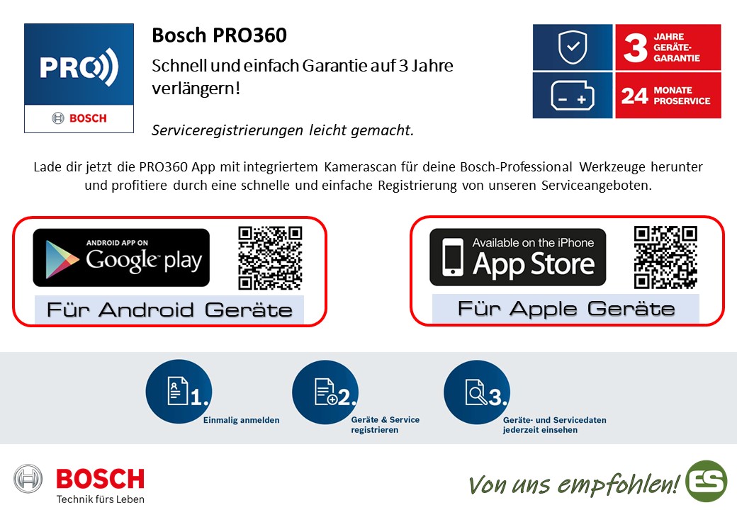 Hinweis: über die Bosch Pro360 App jetzt gratis 1 Jahr zusätzlich für Bosch Maschinen aktivieren!